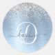 Dieses trendige, schicke Rundaufkleber-Design mit hübschem silberglänzenden Glitzer auf blau gebürstetem metallischem Hintergrund ist einfach zu personalisieren.