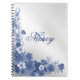 Monogram Name Floral Blue Silver Gray Elegant Notizblock