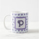 Diese Monogramm-Tasse ist eine großartige Methode, um Ihrer Morgenroutine eine personalisierte Touch hinzuzufügen. Ein blau-graues Polka-Punktmuster erscheint auf einem hellblauen Hintergrund zusammen mit dem Buchstaben "P" in einem Quadrat. Der Brief kann schnell und einfach personalisiert werden. Original Design - C. McGouldrick