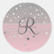 Monogram Name Pink Gray Silver Stars Trendy Runder Aufkleber