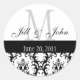 Monogram-Namen Datum Damask Hochzeitgraues Schwarz Runder Aufkleber