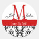 Monogram-Namen Datum Damask Hochzeitrot Weiß Runder Aufkleber