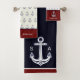 Mit Monogramm Nautical Anchor Bad Navy Blue, White and Maroon Red Bath Handtuch Set