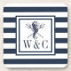Monogram Nautical Seepferd Navy Blue Strip Getränkeuntersetzer