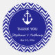 Mit Monogramm marineblaue und weiße nautische Hochzeit danke Ihnen Aufkleber. Das Design besteht aus einem marineblau Zickzack und einem weißen nautischen Anker mit den Initialen von Braut und Bräutigam.