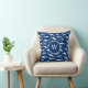 Navy blaues Kissen bedruckt mit einem weißen Haimuster. Mit großen weißen Haie, Hammerhainen, Dreschern und Mako. Ein großer Kreis auf der Vorderseite des Kissens enthält einen Buchstaben, den Sie nach Ihren Wünschen ändern können. Sie können auch den Kreis und den Monogramm-Buchstaben löschen, wenn Sie es wünschen. Klicken Sie auf AKTIVIEREN, um das Produkt zu bearbeiten.