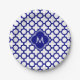 Monogram Navy Blue Quatrefoil Muster Pappteller