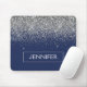 Monogram Navy Blue Silver Glam Glitzer Mousepad