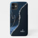 Monogram Navy Blue Silver Glitzer Agate Chic Modern Cell Phone Case| Dieses moderne und schicke Handy Gehäuse verfügt über Ihre Monogramm-Initialen in trendigem handgeschriebenem Skript neben einem eleganten marinebasischen und silberfarbenen silbernen Glitzer Ränder auf einem dunklen Marineschirm. Perfekt für die modische Girly Girl, die will, sich in einer Menschenmenge zu erheben.