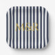Monogram Navy Blue Stripes Stripte Jubiläum Pappteller