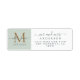 Das schicke, moderne und einfache Retourenschild für das frisch verheiratete Paar zeigt den Text Mr. und Mrs. in eleganter Schrift-Kalligraphie mit einem goldenen Monogramm auf pastellgrünem Hintergrund. Fügen Sie einfach Ihre Namen, Monogramm und Adresse hinzu. Exklusiv für Sie von Happy Dolphin Studio entworfen!