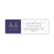 Das schicke, moderne und einfache Retourenschild für das frisch verheiratete Paar zeigt den Text Mr. und Mrs. in eleganter Schrift-Kalligraphie mit einem goldenen Monogramm auf marinebasischem Hintergrund. Fügen Sie einfach Ihre Namen, Monogramm und Adresse hinzu. Exklusiv für Sie von Happy Dolphin Studio entworfen!