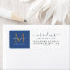 Das schicke, moderne und einfache Rücksendelabel für das frisch verheiratete Paar zeigt den Text Mr. und Mrs. in eleganter Schrift-Kalligrafie mit einem goldenen Monogramm auf klassisch blauem Hintergrund. Fügen Sie einfach Ihre Namen, Monogramm und Adresse hinzu. Exklusiv für Sie von Happy Dolphin Studio entworfen!