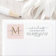 Das schicke, moderne und einfache Retourenschild für das frisch verheiratete Paar zeigt den Text Mr. und Mrs. in eleganter Schrift-Kalligraphie mit einem goldenen Monogramm auf pastellrosa Hintergrund. Fügen Sie einfach Ihre Namen, Monogramm und Adresse hinzu. Exklusiv für Sie von Happy Dolphin Studio entworfen!