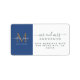 Das schicke, moderne und einfache Retourenlabel für das frisch verheiratete Paar zeigt den Text Mr. und Mrs. in eleganter Schrift-Kalligraphie mit einem goldenen Monogramm auf klassisch blauem Hintergrund. Fügen Sie einfach Ihre Namen, Monogramm und Adresse hinzu. Exklusiv für Sie von Happy Dolphin Studio entworfen!