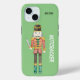 Niedlicher, handgezeichneter Nutcracker mit niedlichem, weißem Text für Ihren Namen. Grüner Hintergrund mit Aquarellbildern.