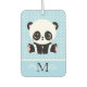 Ein niedlicher Panda-Bär sitzt auf dem Boden auf einem blau-weißen Polka-Punktmuster Hintergrund. Personalisieren Sie mit Ihrem Monogramm und Namen, indem Sie den Text in den Textfeldern editieren, die #airfresh #car #caraccessoires #Auto #automotive #Zuhause #gift #gift #gifts #giftsforher #stockingstuffers #secretsanta #personalisiert #personalized gifts #monogram #mit Monogramm #monogrammmgrammedgifts #start #start #initiale #christmasgifts #rise