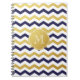 Niedliches und lustiges Gold & Navy Blue Zickzack Pattern Monogram Notebook. Passen Sie das "M" auf Ihren Namen an.