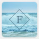 Monogram Ocean Wave Crashing on Shore Quadratischer Aufkleber