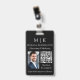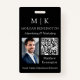 Modernes Abzeichen mit Minimalistischem Namen mit Foto. Schwarz & Weiß oder wählen Sie Ihre eigenen Farben. Fügen Sie dem QR Scan Code Ihre Website oder Web-Adresse für Social Media hinzu. Ideal für kleine Unternehmen, Firmen-Marken, Selbstständige, Schönheitssalons, Wellness-Center, Caterer, Bäckereien, Kaffeehäuser, Restaurants und vieles mehr. Einfach mit Ihren Monogramm-Initialen, Firmennamen und Informationen, Jobtitel, Slogan, Mitarbeiter-Foto oder sogar mit Ihrem Logo oder persönlichem Markendesign personalisieren.