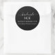 Moderne Minimalistische Kalligrafie Script Business Handmade Round Product Stickers. Schwarz & Weiß oder wählen Sie Ihre eigenen Farben. Ideal für kleine Unternehmen, Firmenmarken, Selbstständige, Online-Verkäufer und vieles mehr. Einfach mit Ihren Monogramm-Initialen, Firmennamen und Informationen, Jobtitel, Slogan oder sogar mit Ihrem Logo oder persönlichem Markendesign personalisieren.