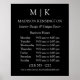 Modernes, Minimalistisches Business-Stunden-Poster-Zeichen. Schwarz & Weiß oder wählen Sie Ihre eigenen Farben. Ideal für Einzelhändler, kleine Geschäfte, Salons, Wellness-Center, Bäckereien, Cafés, Restaurants, Bars und vieles mehr. Einfach mit Ihren Monogramm-Initialen, Firmennamen und Informationen, Fotos, Slogan oder sogar mit Ihrem Logo oder persönlichem Markendesign personalisieren.