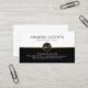 A white and black layered cover is demarcated by a thin faux gold line near the card's center. Resting on this line is your name initials-monogram inside a gold circle. At the top of the card is your prestigious name and job title with the contact details southwards near the the base.