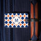 Mit Monogramm orangefarbenes und königsblaues Quarrefolienmuster. Wechselnde orangefarbene und königsblaue Quatrefolienmuster. Der erste kann geändert werden.