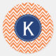 Monogram Orange Zigzag Muster Runder Aufkleber