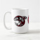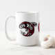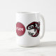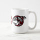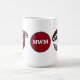 Fügen Sie Ihr Monogramm zu dieser nativen Haida Killer Wal Design Kaffee Tasse. Tiefe bordeauxfarbene, weiße und schwarze Formen kreisen um die Tasse. Ihre Initialen werden in der Mitte des Designs zentriert.