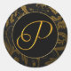 Monogram P Gold and Black Damask Wedding Siegel Runder Aufkleber