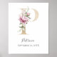 Monogram P Pink White Floral Gold Letter Kinderzim Poster