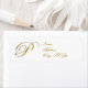 Letter P in Gold Edwardian Script fügt eine Touch von Eleganz zu diesen Monogramm-Rücksendeadressen-Aufklebern. Anpassen, indem Sie die Hintergrundfarbe ändern und den Text mit Ihrem eigenen Namen und Ihrer eigenen Adresse bearbeiten. Passen Sie den Schriftart durch eine Farbänderung an.