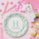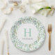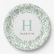 Benutzerdefinierte mit Monogramm PapierTeller, die mit Ihrem Familiennamen oder anderen Texten personalisiert sind. Dieses frische Federdesign zeichnet sich durch einen Rand von Aquarellgrün rund um Ihren Monogramm Initial und Namen aus. Verwenden Sie die Designtools, um alle Schriftart und Farben, die Sie möchten, auszuwählen oder laden Sie Ihre eigenen Fotos, um das Design weiter anpassen.