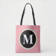 Hübsche, umkehrbare Pasten minzen grüne Polka Punkte auf rosa Hintergrund. Personalisieren Sie Ihre mit Monogramm Initialtexte in weißem Text in schwarzem Kreis. Die Rückseite der Tasche hat den Wortlaut, haben Sie einen schönen Tag. Verlass den Text, füge deinen eigenen ein oder lösche ihn, um nur ein großes Kreisbild zu zeigen. Frische modische, geometrische Damensbekleidung für jede Jahreszeit. Original Designs © TamiraZDesign. www.zazzle.com/tamirazdesigns