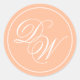Monogram Peach 2 Initials Elegantes weißes Skript Runder Aufkleber