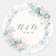 Monogram Peach Dusty Blue Faded Floral Wedding Runder Aufkleber