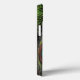 Add your custom personalized monogram initials to this rich peacock feather with tan lettering case. Feys high-definition close up image of a peacock bird feather in colors of copper, royal blue, bright blue and celadon green, mossy background. Elegant and stylish wildlife animal design for the business man or woman with fashion and class.