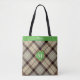 Personalisiert Name Monogram Modern Gray Beach Tote Bag Trendy, stilvoll und chic anpassbar Tote Tasche mit "personalisierter Name" auf einem grünen Streifen oben, "personalisierte Monogramm" auf einem grünen Splash Abzeichen darunter und Burlywood / Battleship graue karierte tartan Hintergrund. Personalisieren Sie diese schöne Tasche als ein wunderbares Geschenk für einen Lehrer, Braut, Brautjungfrau, Freund oder ein Mitglied Ihrer Familie, indem Sie Ihren Namen oder Text / ändern Sie den Schriftart, Farbe, Größe und Position.