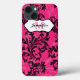 Mit Monogramm moderne, rosa und schwarz-grüne verzierte Blumenrollen und Wirbel Muster Case-Mate iPad 2, 3 oder 4 Gehäuse mit Ihrem Namen, Initialen, Monogramm, Logo oder anderen Text angepasst.