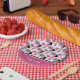 Monogram Pink Black Soccer Ball Pattern Pappteller