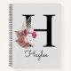 Monogram Pink Boho Girly Floral Initial H Notizbuch