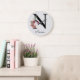 Monogram Pink Boho Girly Floral Initial N Große Wanduhr