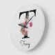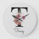 Monogram Pink Boho Girly Floral Initial t Große Wanduhr