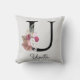 Monogram Pink Boho Girly Floral Initial U Kissen