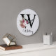 Monogram Pink Boho Girly Floral Initial W Große Wanduhr