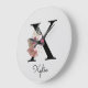 Monogram Pink Boho Girly Floral Initial X Große Wanduhr