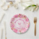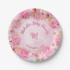 Monogram Pink Gold Floral Baby Dusche Pappteller