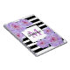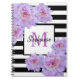 Monogram Pink Peony Blume Black Strip Lila Notizblock