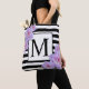 Monogram Pink Peony Blume Black Strip Tote Beutel